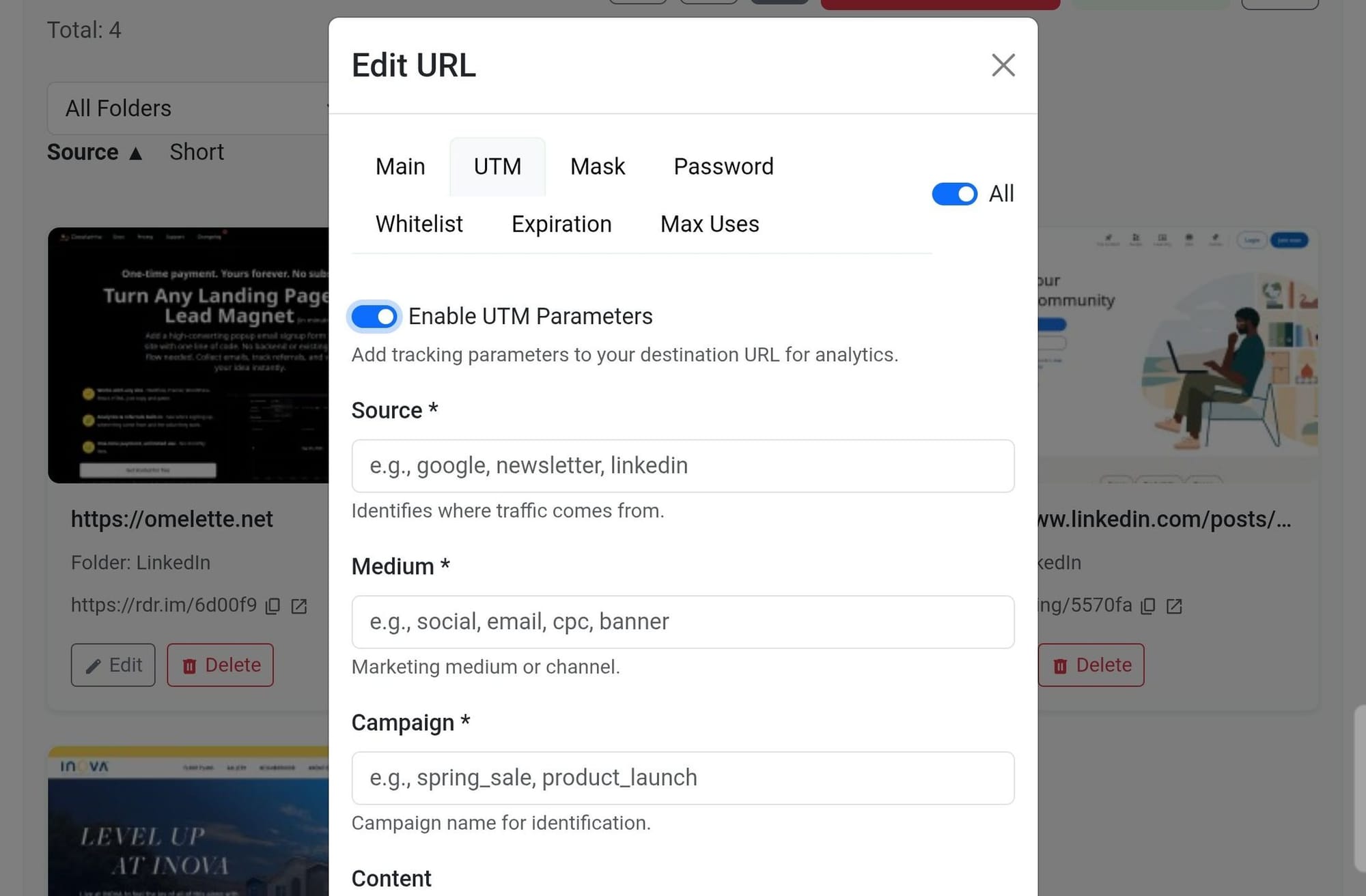 🎯 UTM Support for Shared URLs – Automatically append UTM parameters to track campaign performance across all your marketing channels